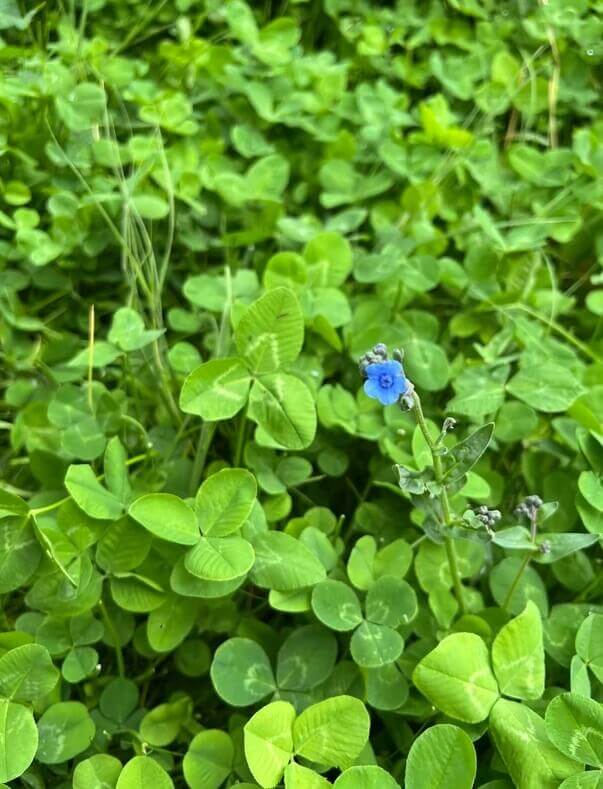 Their photos showed incredibly lush growth all around their home. Some areas were thronged with mixed wildflowers, while others were carpeted with clover. They even snapped pictures of four- and five-leaf clovers and a few visitors.