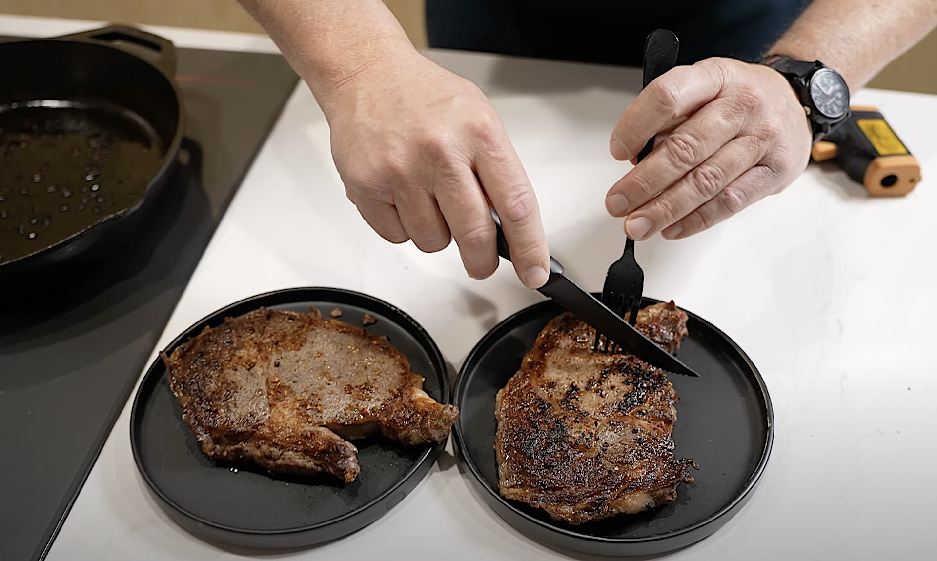 During the video, Blake indicates that the temperature on the gas range is fluctuating. "We're having a hard time getting that temperature to sit and stay right where it is. We have to make slight adjustments to it all the time," Blake detailed while the steaks were cooking. "That definitely is one of the advantages of having an induction cooktop versus a gas range."