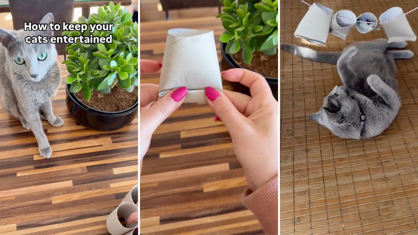 They showed how to make cat toys using old toilet paper rolls, string, and a few cat treats. The cat in question seems to love the toy as much as they would a more pricey one.