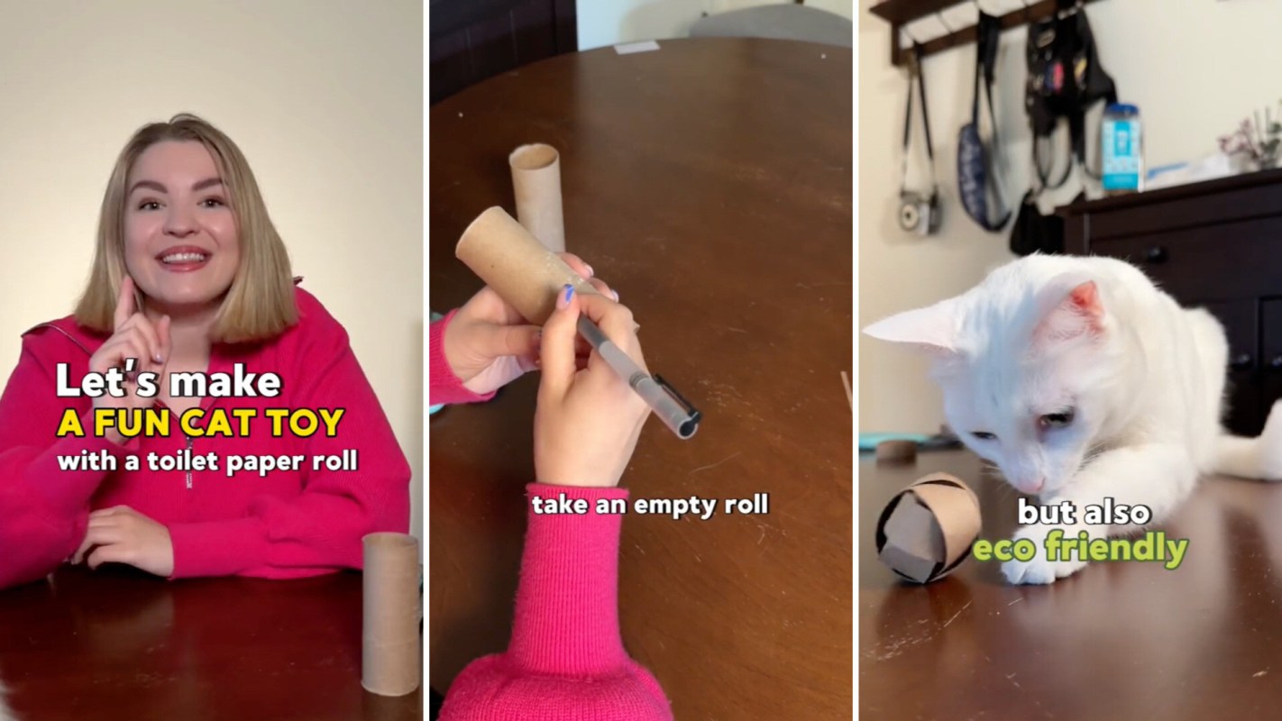 Once you finish a roll of toilet paper, consider making a cat toy. As TikToker Maria (@cats.explained) demonstrated, recycling this common household item can provide hours of free fun for your kitty.