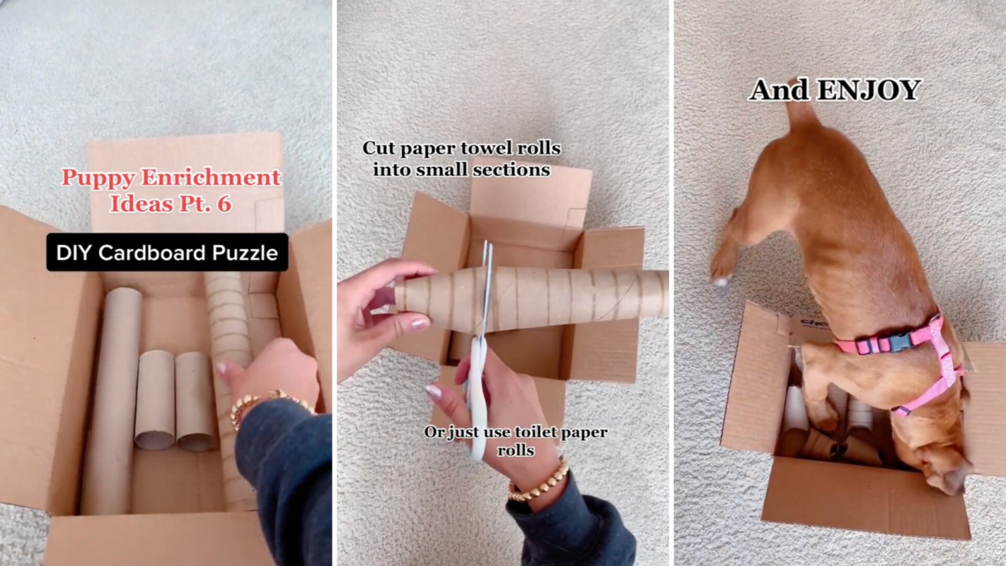 Empty toilet paper rolls have been creatively reused for various functions — from styling curls to creating cheap fire-starting kits. The dog owner of Honey the Boxer (@honey_the_boxer) shared a video on TikTok demonstrating an easy way to create a DIY dog enrichment activity using empty toilet paper rolls.