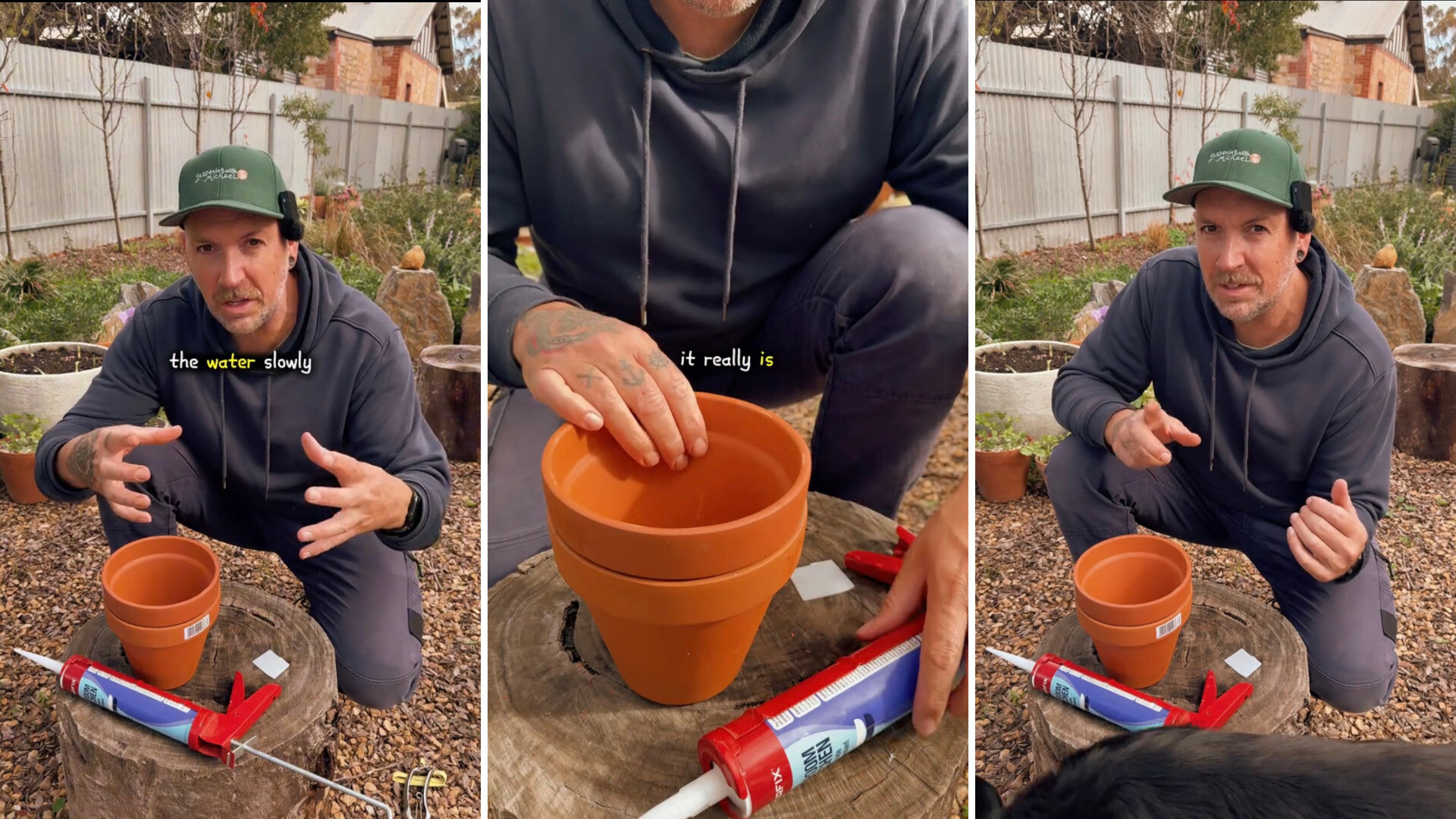 The clip starts with a short explanation of these vessels: "They've been used for thousands of years as a type of watering system. It's basically where you get some terracotta and you bury it below the ground. … [It is] filled with water, and as terracotta is porous, the water slowly leaches out … watering those plants nearby."