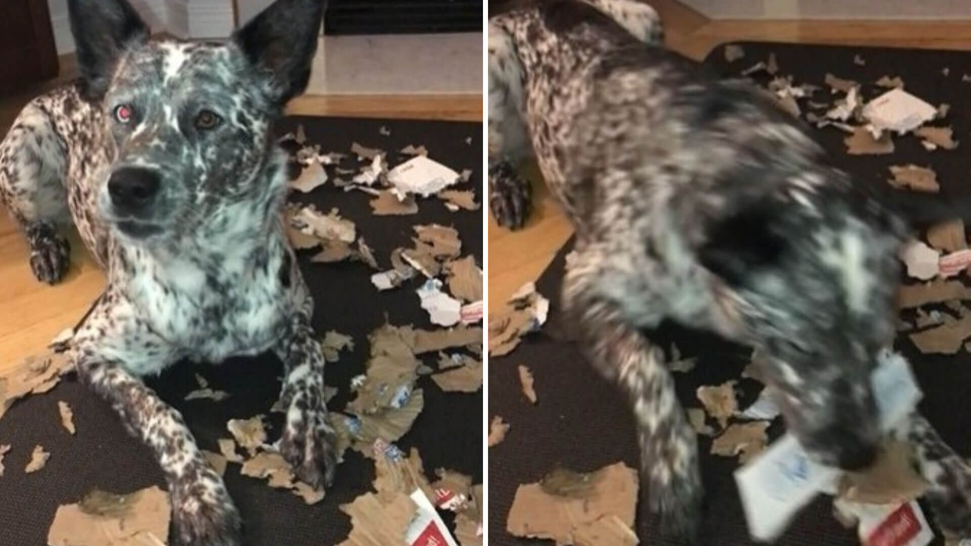 The video showed the dog taking on the task of breaking down cardboard into the appropriate size for composting. Behind the dog was a heap of evidence that the animal was not just enthusiastic but also pretty darn good at the task.