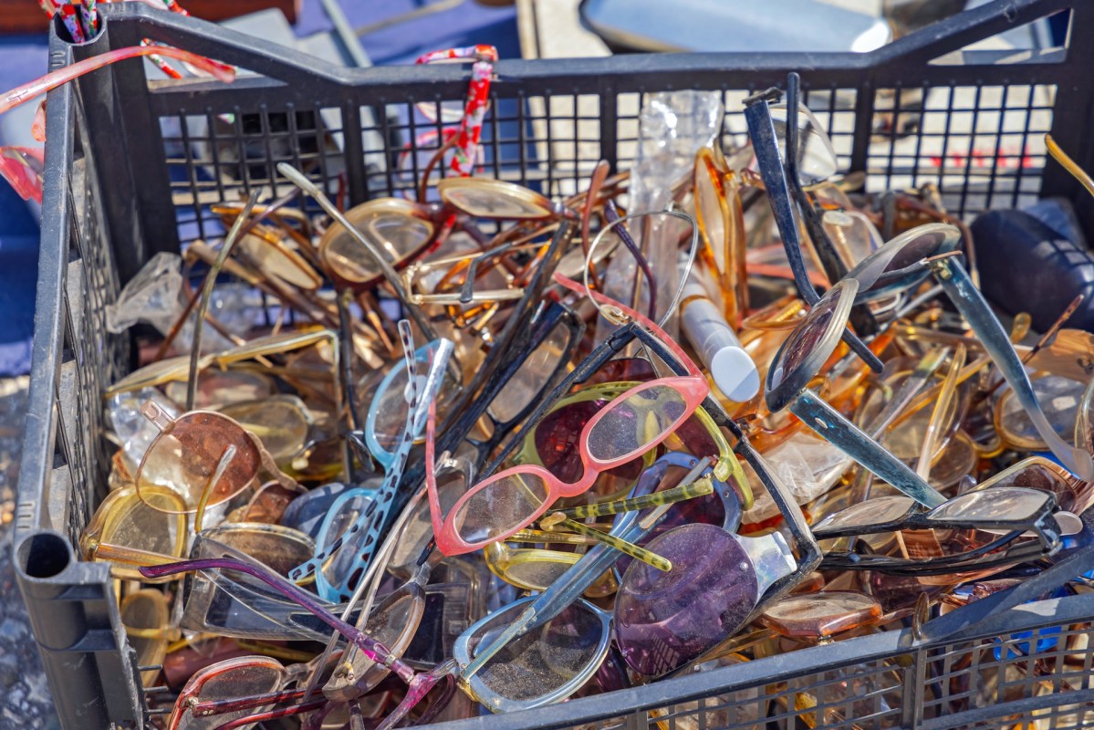 The shopper eyed the sunglasses at a local Goodwill Bins Outlet, where items are sold at incredibly discounted prices based on weight.