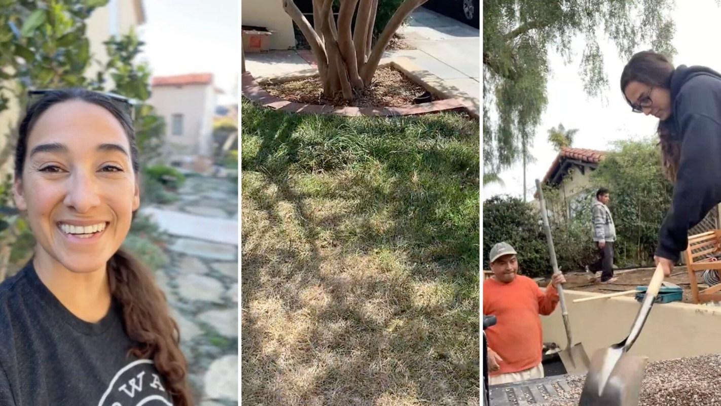 In a popular TikTok video, landscape design influencer Sara Bendrick (@sarabendrick) has shared some before-and-after photos of a client's new drought-resistant front lawn.