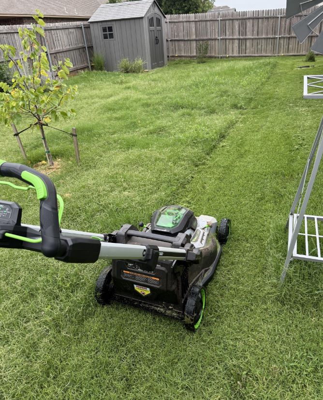 "Honestly expected it to struggle as much as my old gas mower did with the grass being too tall and a little damp," the user captioned, explaining how they were "really impressed" and pleasantly surprised by their electric mower in that regard.