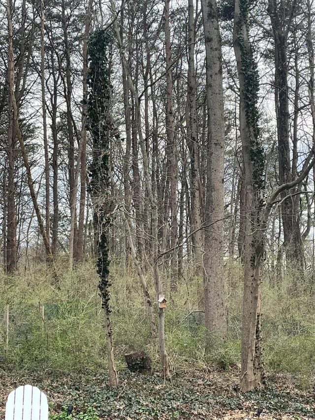 In another Reddit thread, people shared what it looks like when an invasive species takes over: a forest was completely covered in a green plant called kudzu. Kudzu is similar to English ivy because it can grow extremely fast and suffocate the trees it grows on.