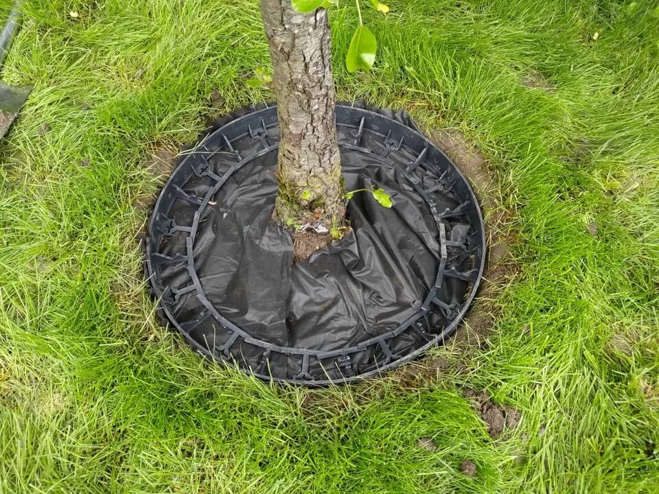 "I have dug a circle around a tree, to let the tree breathe, and laid a plastic edge to have a clear separation between tree and lawn. I have laid landscaping fabric underneath and I'm going to put mulch on top," they wrote.