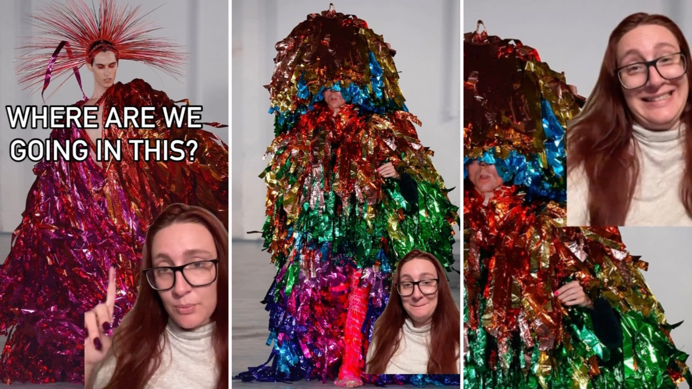 TikToker refashionedhippie (@refashionedhippie) didn't disappoint with her colorful commentary about an equally colorful outfit in this video about a "high fashion" showstopper. It's hard to describe what the actual outfit is. Is it a coat? Is it a dress? Is it a costume? Either way, this TikTok video and comments created many humorous nicknames for this fashion fail. One comment even hinted that it may be a fashion designer trying to troll rich people.