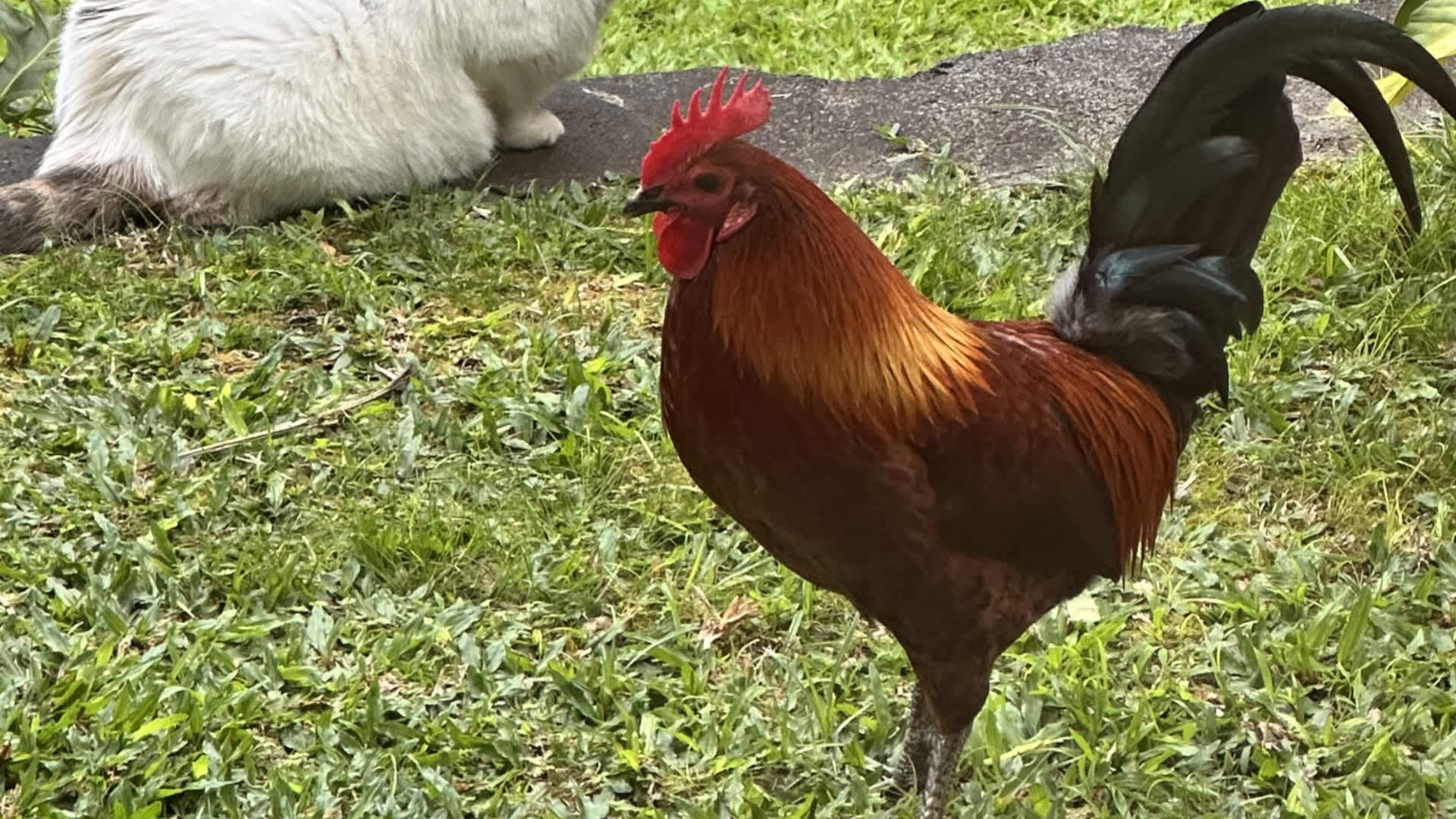 Posting on Reddit, the homeowner shared a picture of the stunning bird, and explained that the rooster had shown up seven months ago and never left, even bringing two hens along with him.