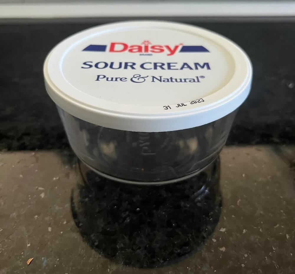 A thrifty home cook has found a way to replace old Pyrex lids for free by using lids from a tub of Daisy Sour Cream.