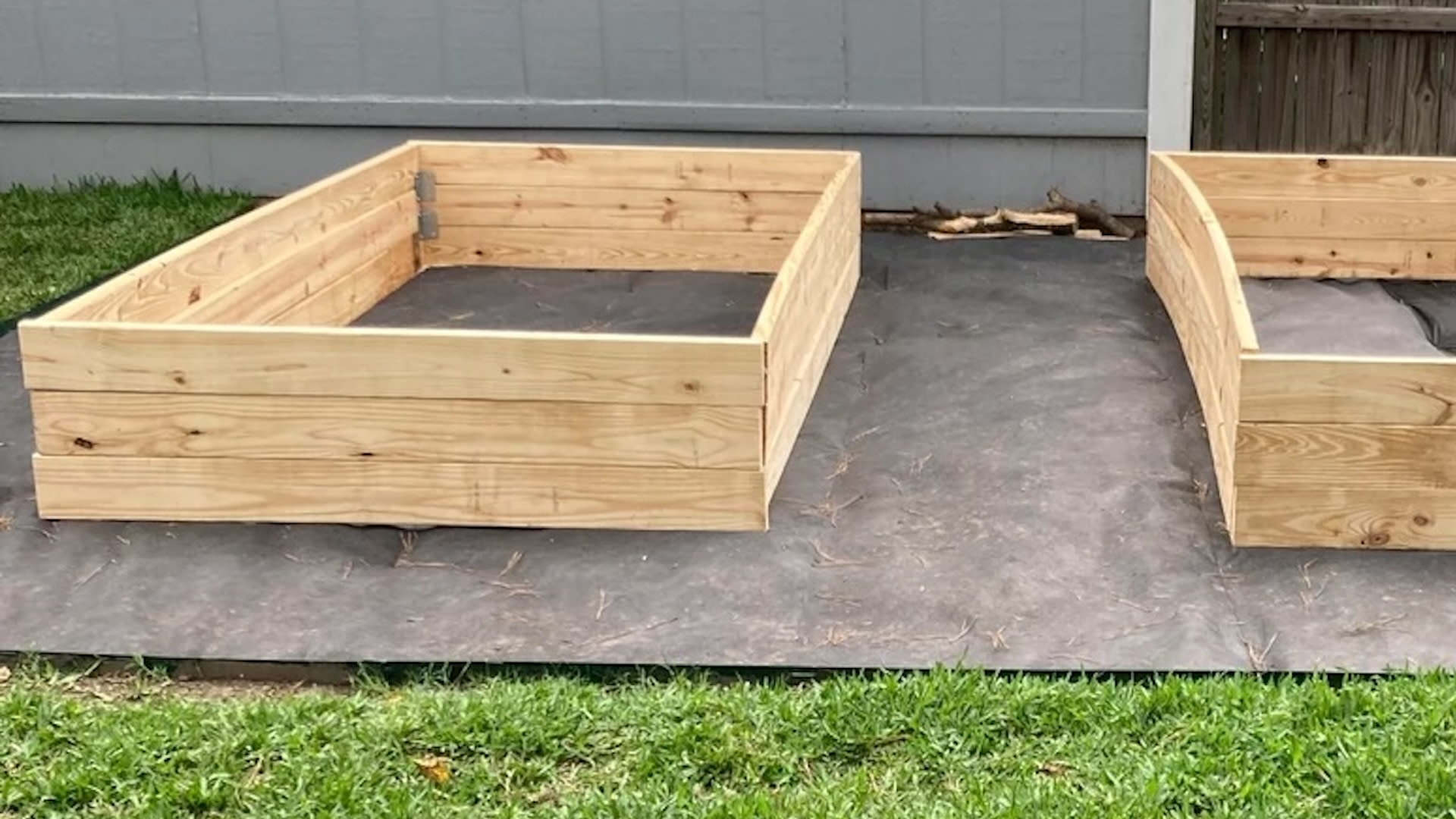 They began by writing that they cleared the space in the spring and "tilled the area, raked up all grass and plant matter, leveled, put landscape fabric and wood chips down, and built the beds." They removed the landscape fabric before filling the 1.5-foot-tall beds.ย