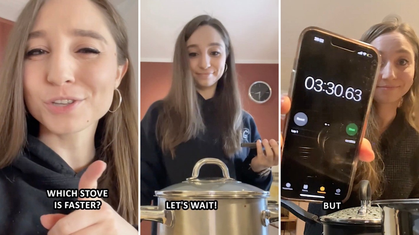 YouTuber @FelifromGermany has a gas stove at her home in the U.S. but uses her parents' induction stove when she visits them in Germany. She posted a YouTube Shorts video comparing how fast the two can boil water.
