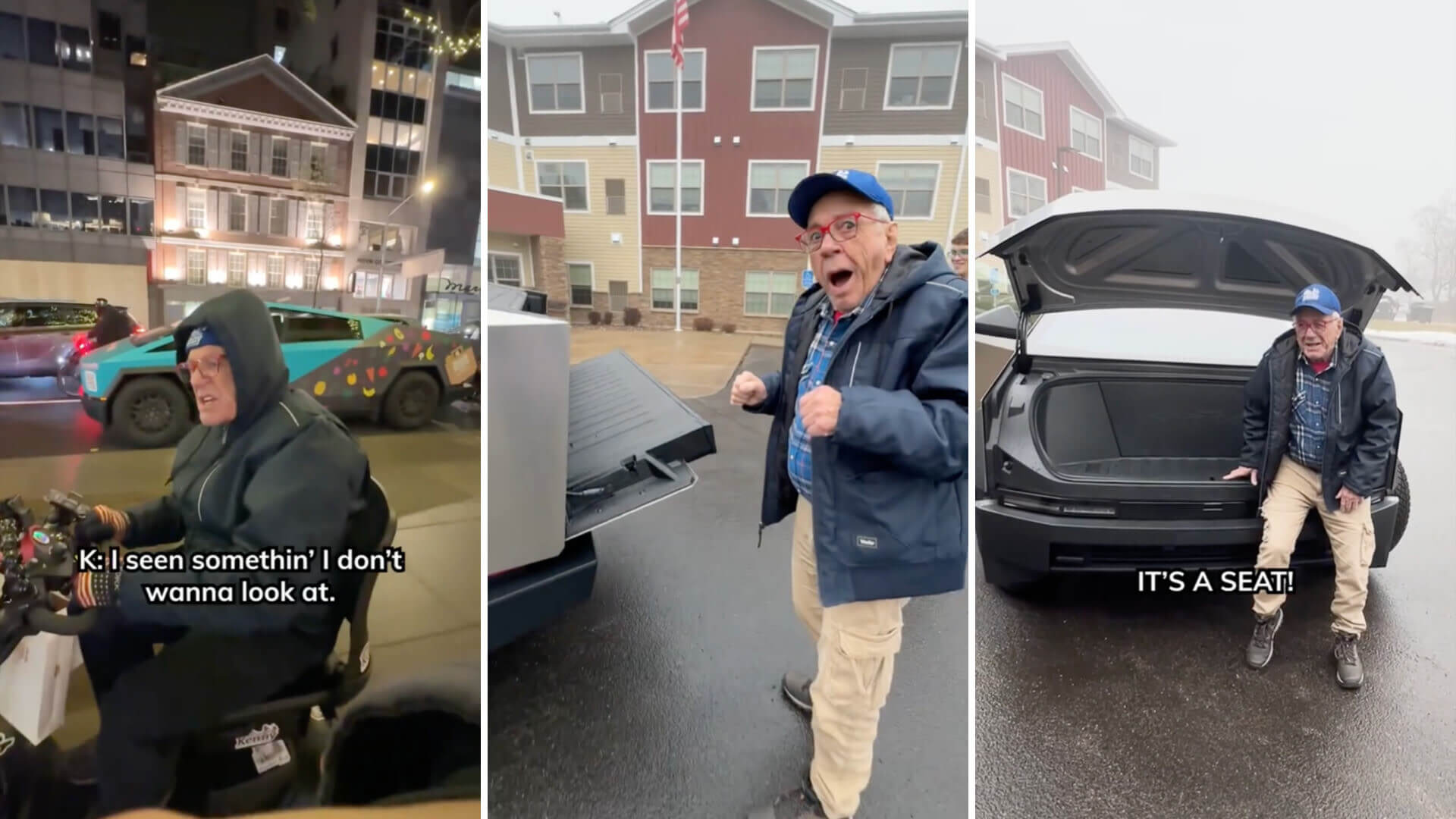 In the video shared by patriotickenny (@patriotickenny), the retiree is initially skeptical of the Cybertruck's futuristic design and unconventional features. "I don't believe this," he says, shaking his head at the vehicle's angular exterior. However, as he explores its features, his attitude shifts.