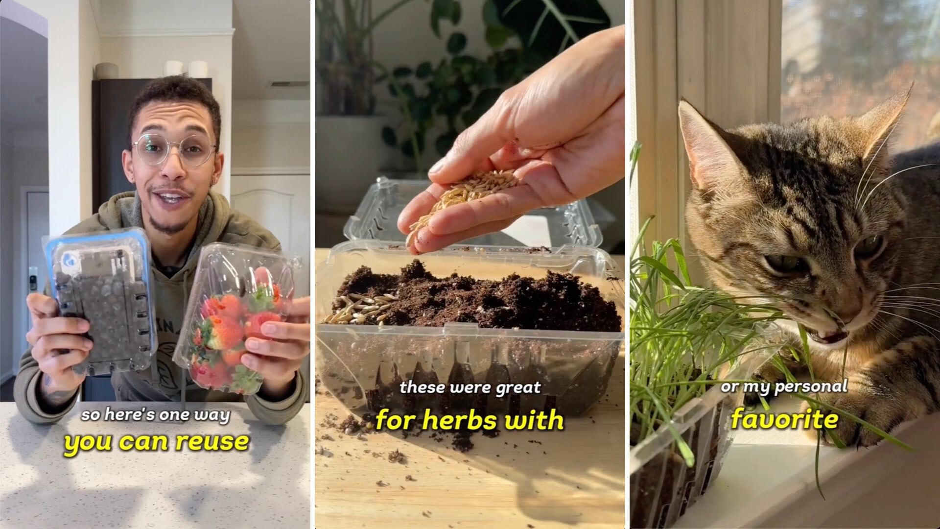 The TikTok account for Sustainability Matters (@sustainabilitymattersva), a Virginia nonprofit focusing on climate awareness, shared a useful tip for reusing the plastic clamshell containers that many berries, herbs, and tomatoes come in.