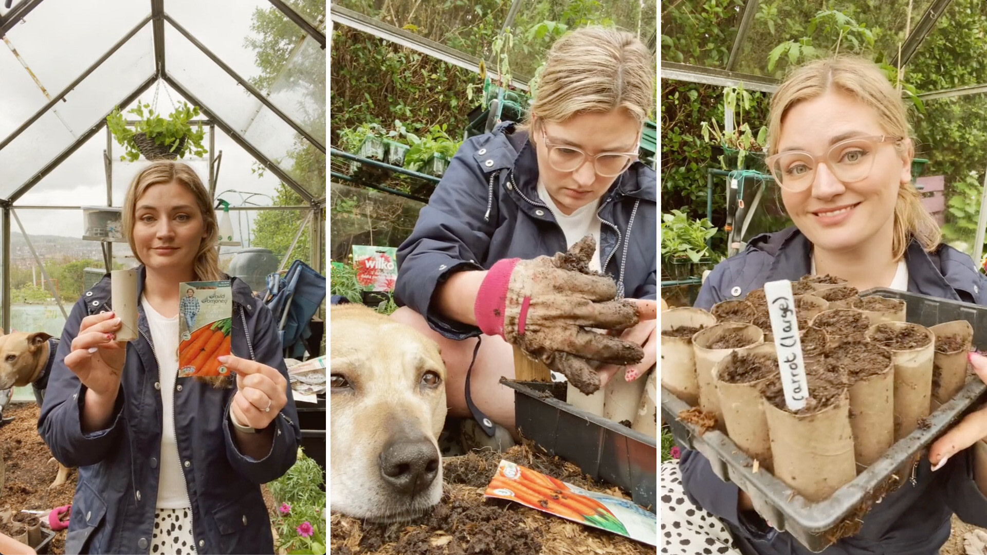 In their video, captioned "Has anyone tried this method before?! Hoping to get some straighter carrots this way," Rachel demonstrates how they used old toilet paper rolls to seed carrots in the hopes of growing them straighter. They packed the toilet paper rolls with damp earth, then dropped carrot seeds into each roll.