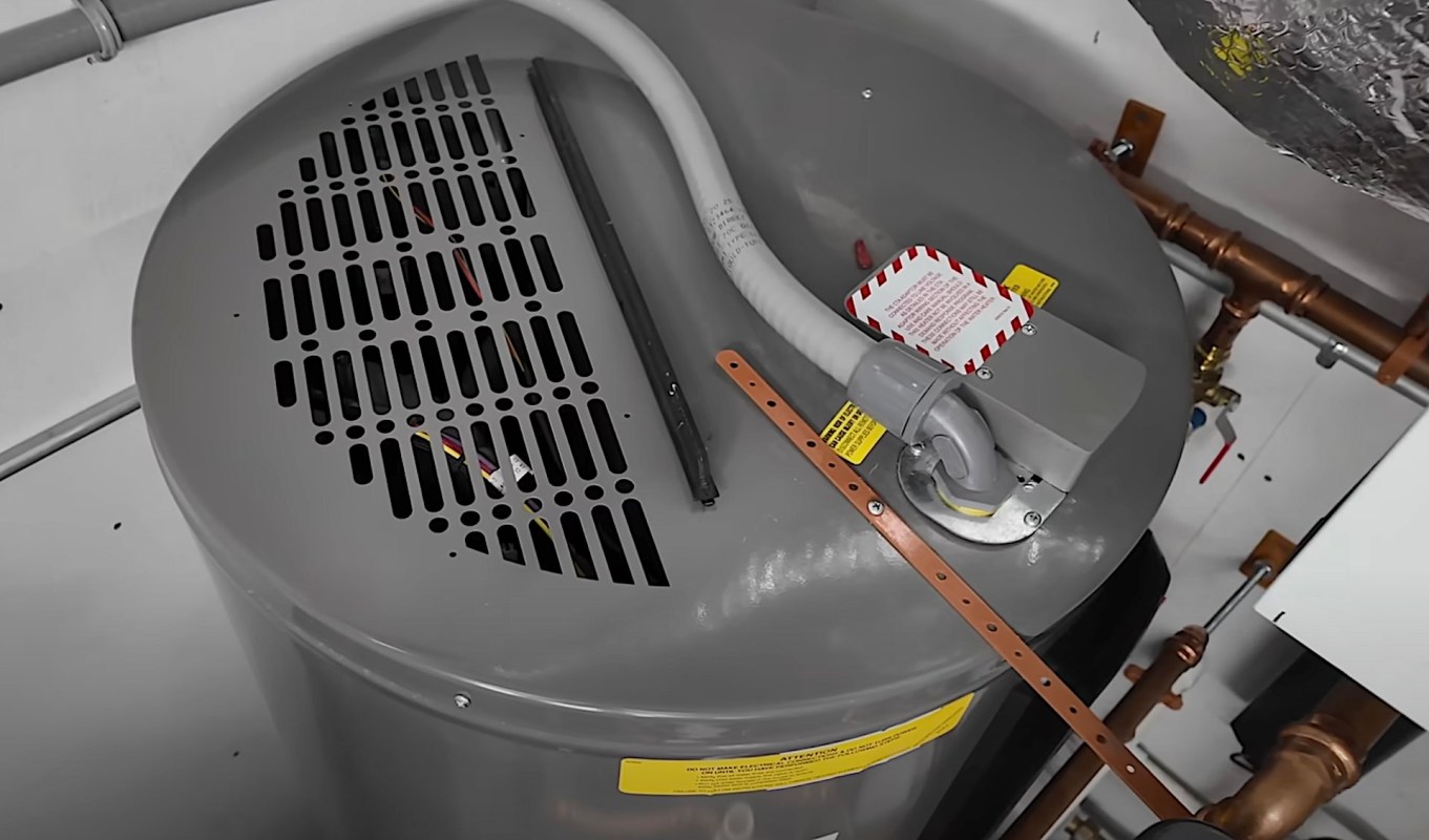 In the video, Ferrell begins by explaining that standard electric water heaters have two heating elements, with one on the bottom and another on top. Cold water is fed into the bottom, and heated water is pumped out from the top.