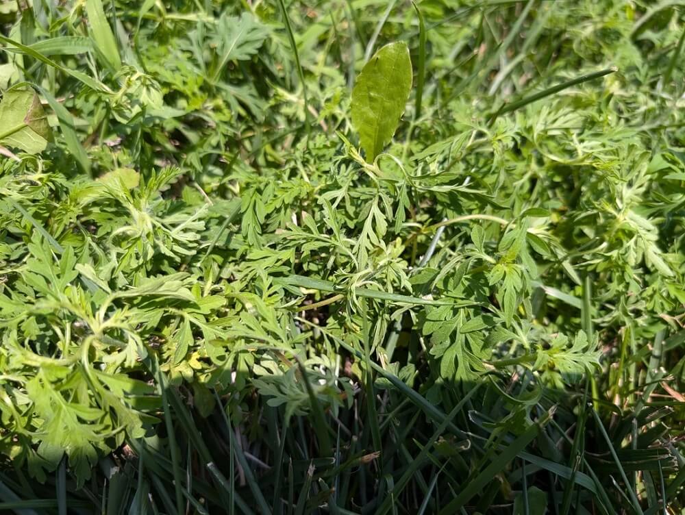 "The yard looked fine the first half of the year, albeit with a lot of dandelions in April," the Redditor explained. "However, I think I was mowing too short (or so I was told) and now I have a bunch of weeds, plus dark patches of something growing on my grass."