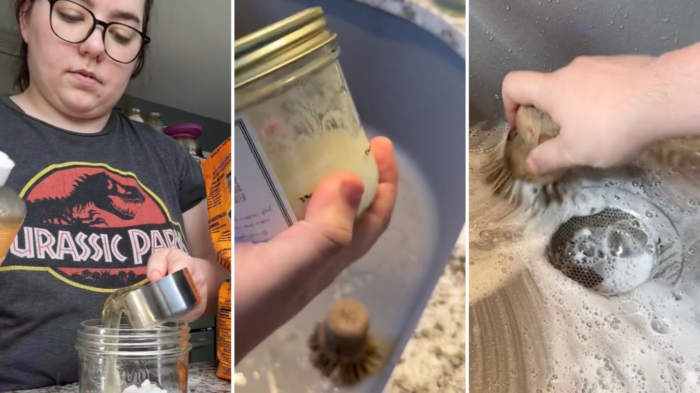 In her TikTok video, Watkins demonstrated how effective her homemade, natural cleaner is by showing the quick and easy process of scrubbing her stone kitchen sink and suggesting other applications.