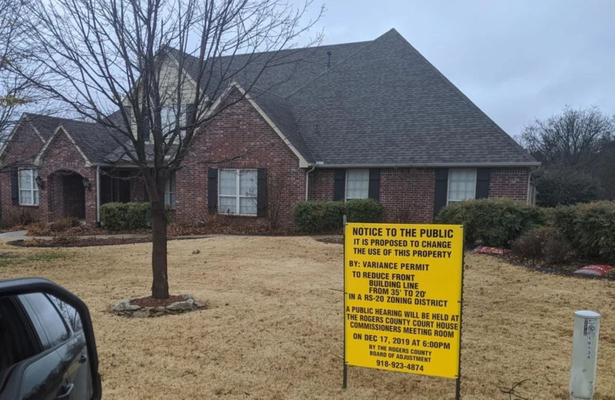 The story came from Rogers County, Oklahoma. According to the original poster, their parents' HOA passed a rule in 2019 requiring houses to be set back 35 feet from the road.