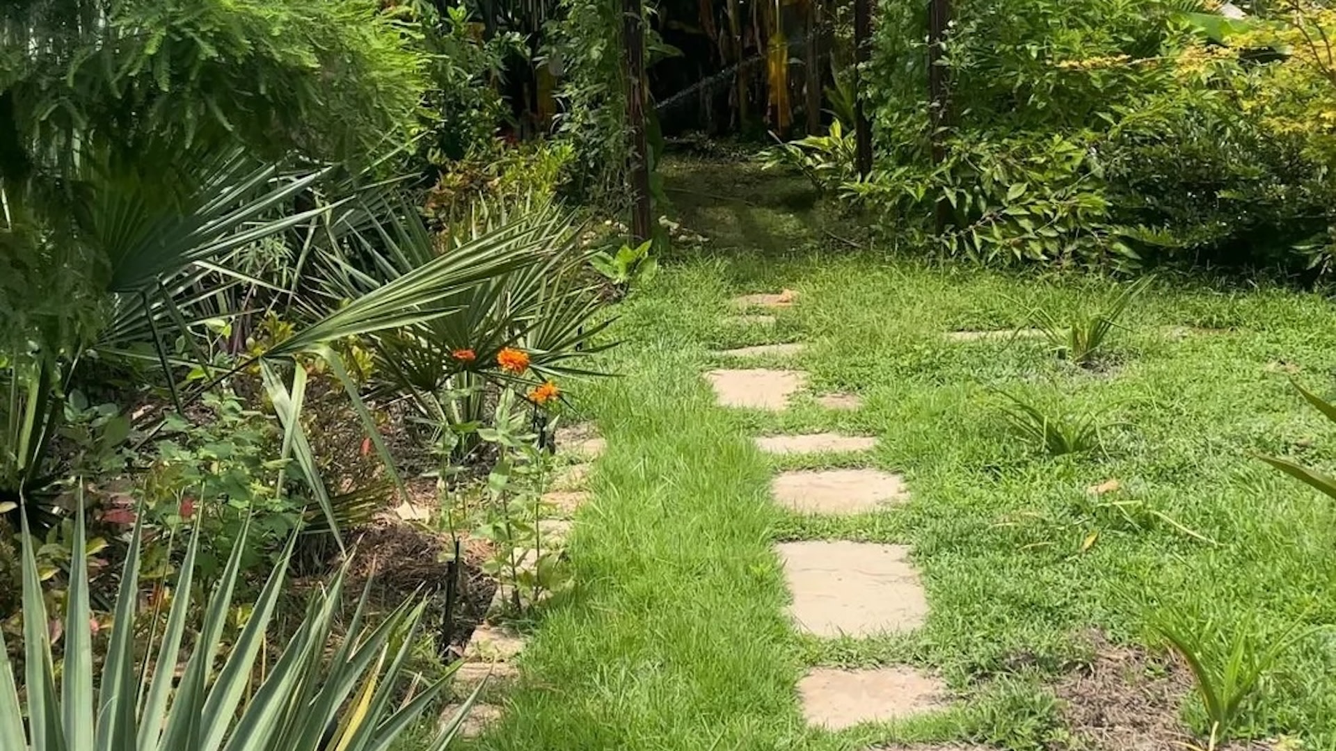 When one homeowner's yard suffered hurricane damage, they turned it into an opportunity and converted the area into a scene from a tropical jungle.