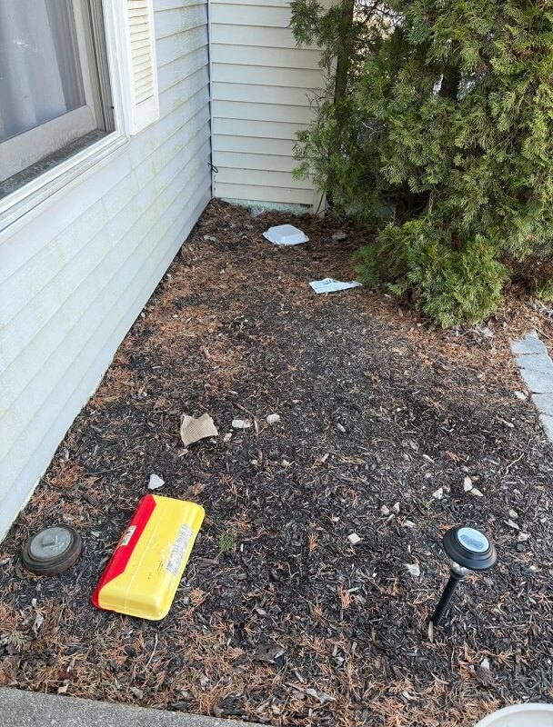 On the r/mildlyinfuriating subreddit, the homeowner shared a photo of the trash with the headline, "Inconsiderate neighbors keep leaving their trash to blow into our yard." They explained the neighbors recently moved in and "keep leaving trash cans overfilled so all their trash blows into our yard."