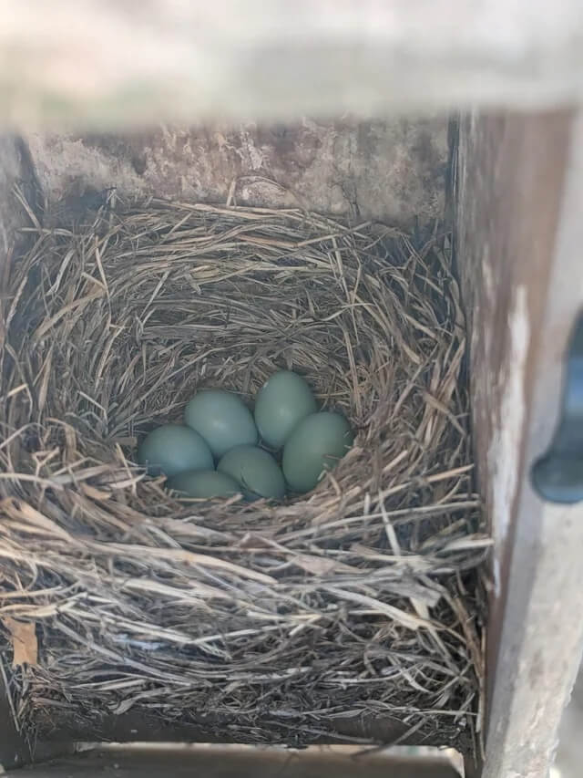 They posted pictures of a bluebird nest — the first with six eggs, and a later photo where the nest is stuffed with healthy chicks.