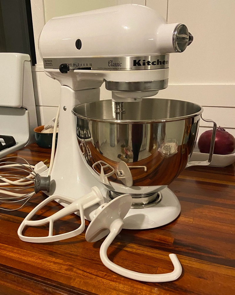 "Last week's white whale find! KitchenAid mixer for $36!" they wrote excitedly in the subreddit r/ThriftStoreHauls. "Came with 3 mixers, a shield, the bowl and the manual/warranty card. We're looking forward to making lots of bread and other fun things."