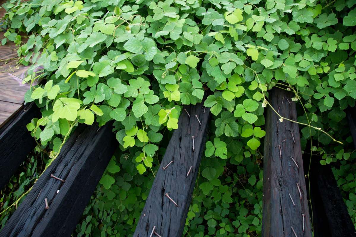 Kudzu is an invasive species in over 30 U.S. states, described by the Washington Invasive Species Council as "so aggressive it covers and smothers all other plants in its path and eliminates native species," disrupting the original ecosystem and damaging natural and manmade structures. If left unchecked, its weight could devastate trees, buildings, and power lines.