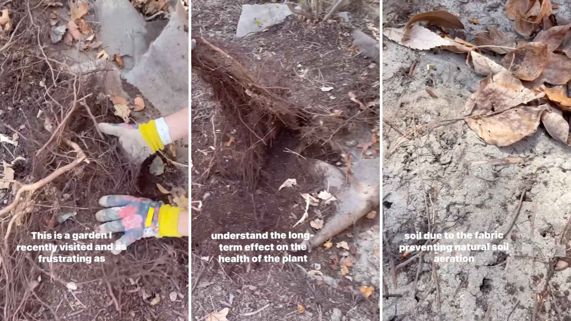"The ONLY time I can see a landscape fabric be an option, is under gravel," Maria noted in the video's caption.