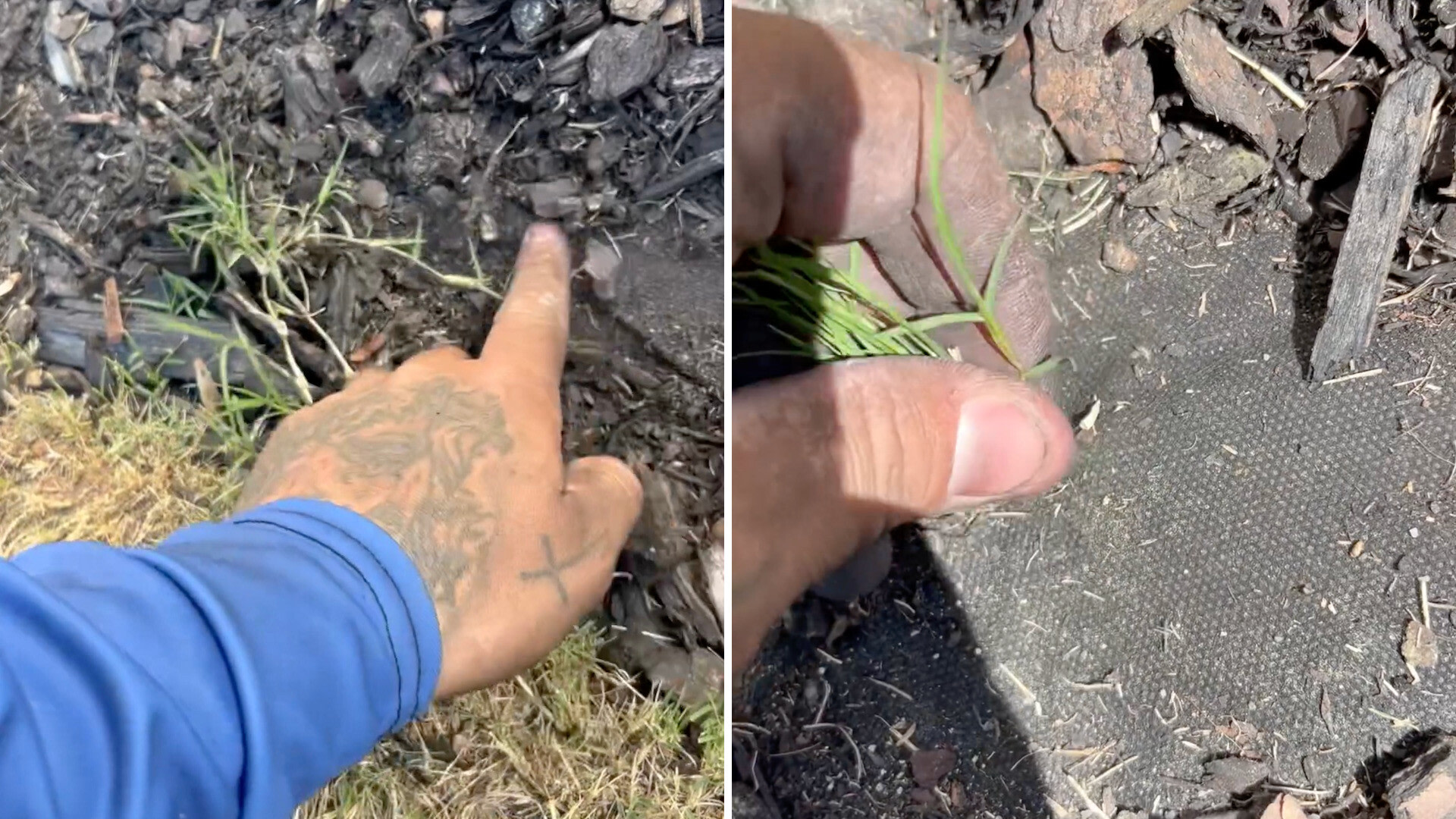 The waste of money is evident from the fact that the fabric in the video failed to do the job the homeowner paid for it to do — there is still grass growing through holes in the fabric that the Instagrammer's hands have to pluck out. And, as the OP noted, there is a cost to having someone remove this ineffective barrier.