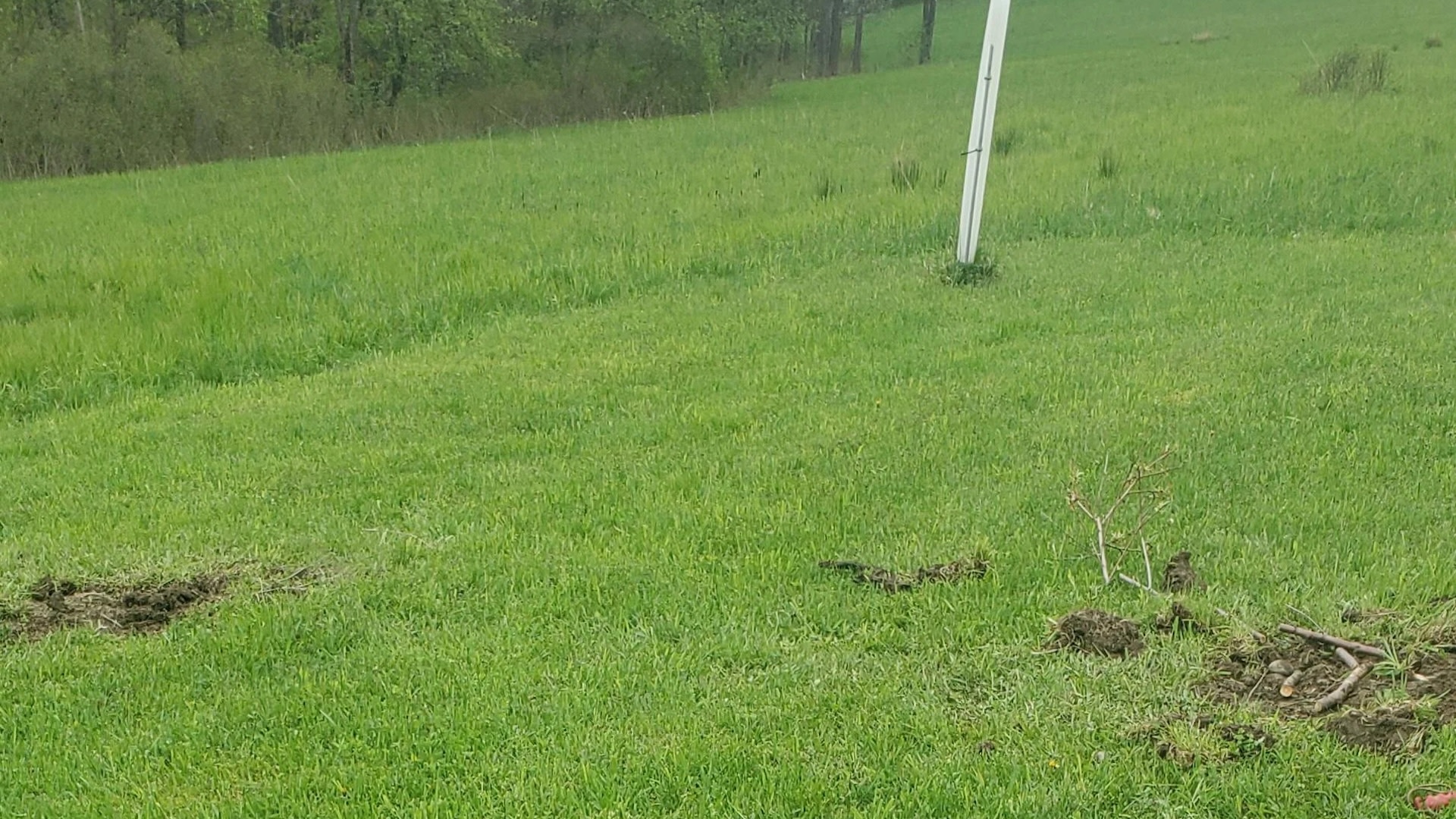 In the subreddit r/homestead, a Redditor shared a photo of a grass lawn dotted with what appears to be ripped-up soil.