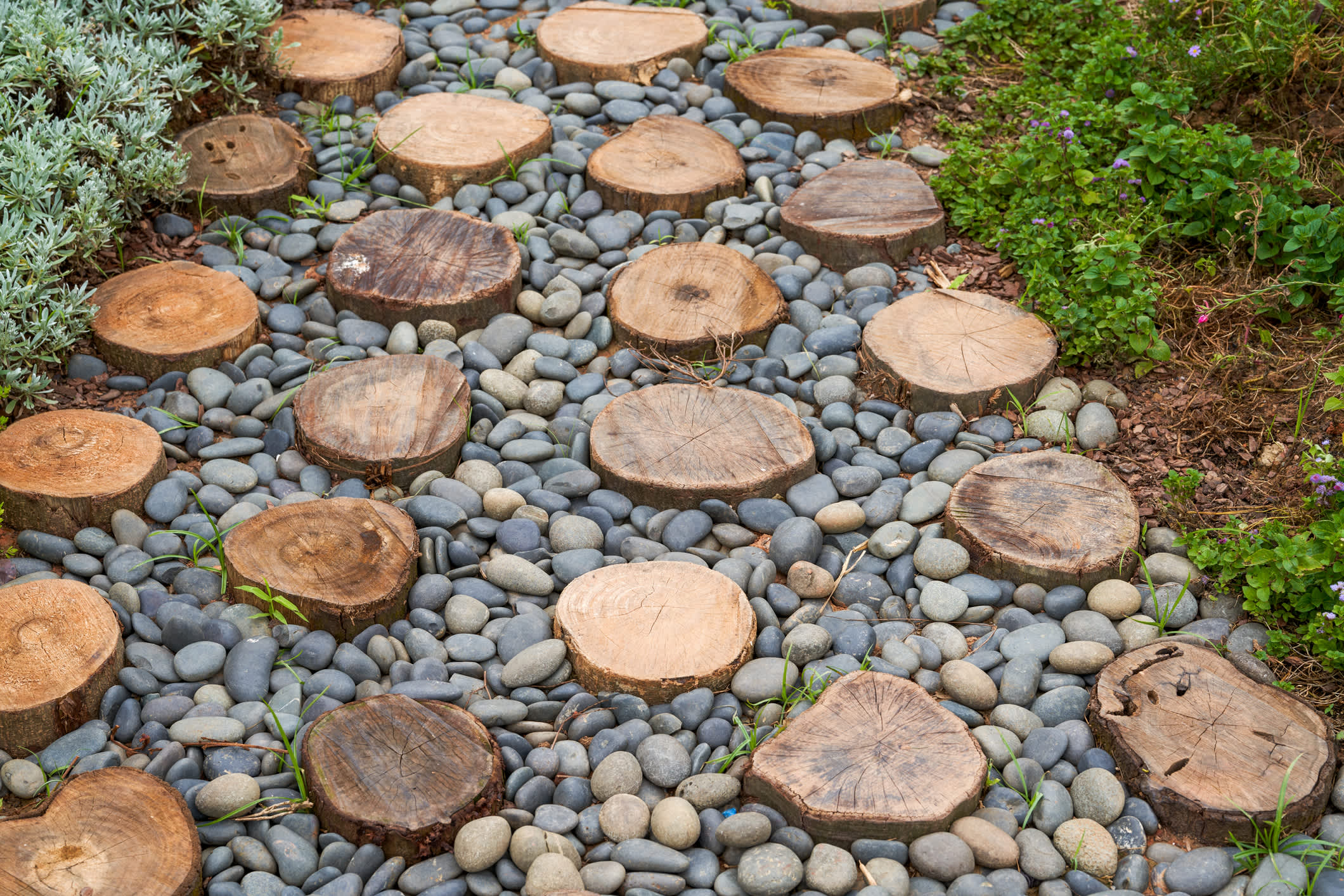 The homeowner wanted to replicate a unique outdoor ground path design they had seen and admired on a trip to Croatia. These paths consisted of cut wooden stumps from fallen trees, laid in an aesthetically pleasing pattern, and filled in between with dirt.