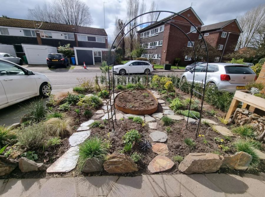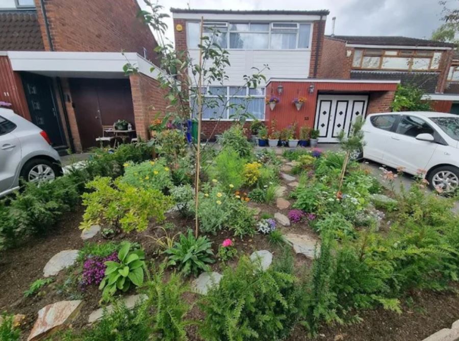 "It has been 1 year now since I removed the lawn from our front garden. I wanted to share some progress pictures in case it is helpful for others," the original poster wrote, attaching pictures of their garden over the past year.