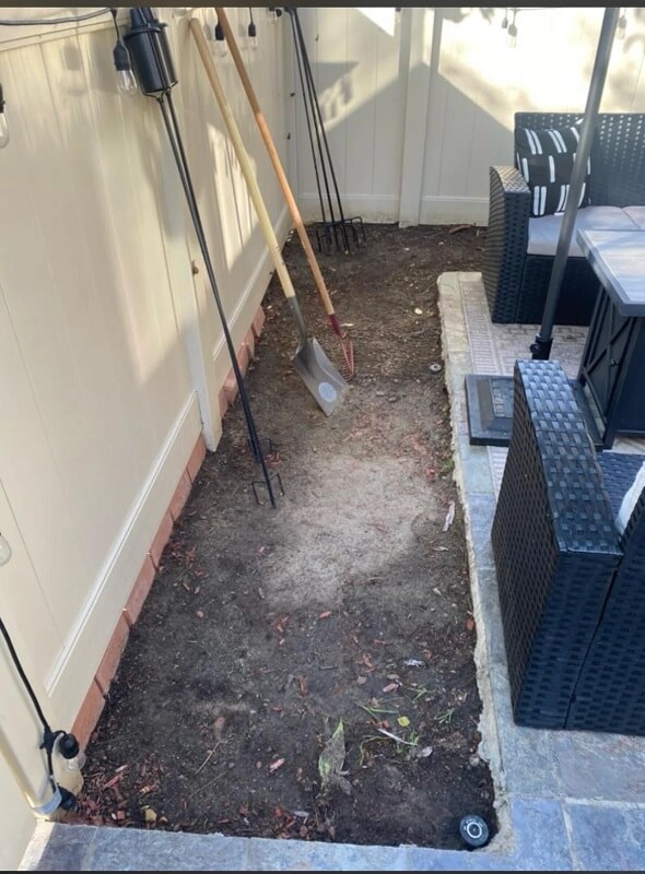 Posting in the r/landscaping subreddit, the poster shared that they have a small patch of dirt around the outside of their patio in their backyard that they want to put artificial turf down on.