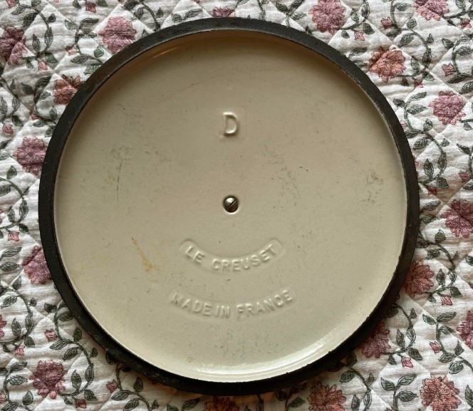 The letter "D" stamped into the lid of this black pan may indicate a vintage model, which could potentially be worth even more.