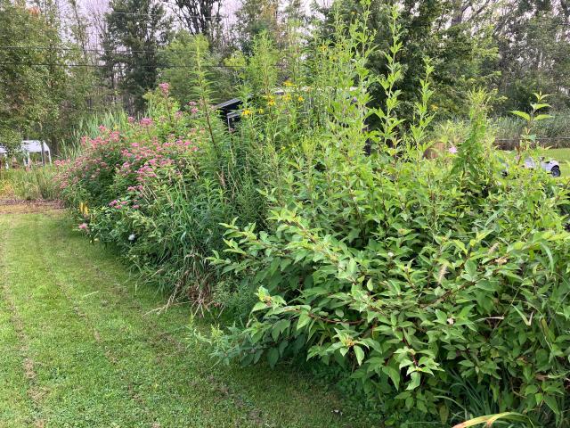 This living fence concept uses beautiful native plants to create a barrier, offering a year-round solution at a fraction of the cost of traditional fencing. The homeowner identified other plants they used as Joe Pye weed, red osier dogwood, and buttonbush to intrigued commenters.
