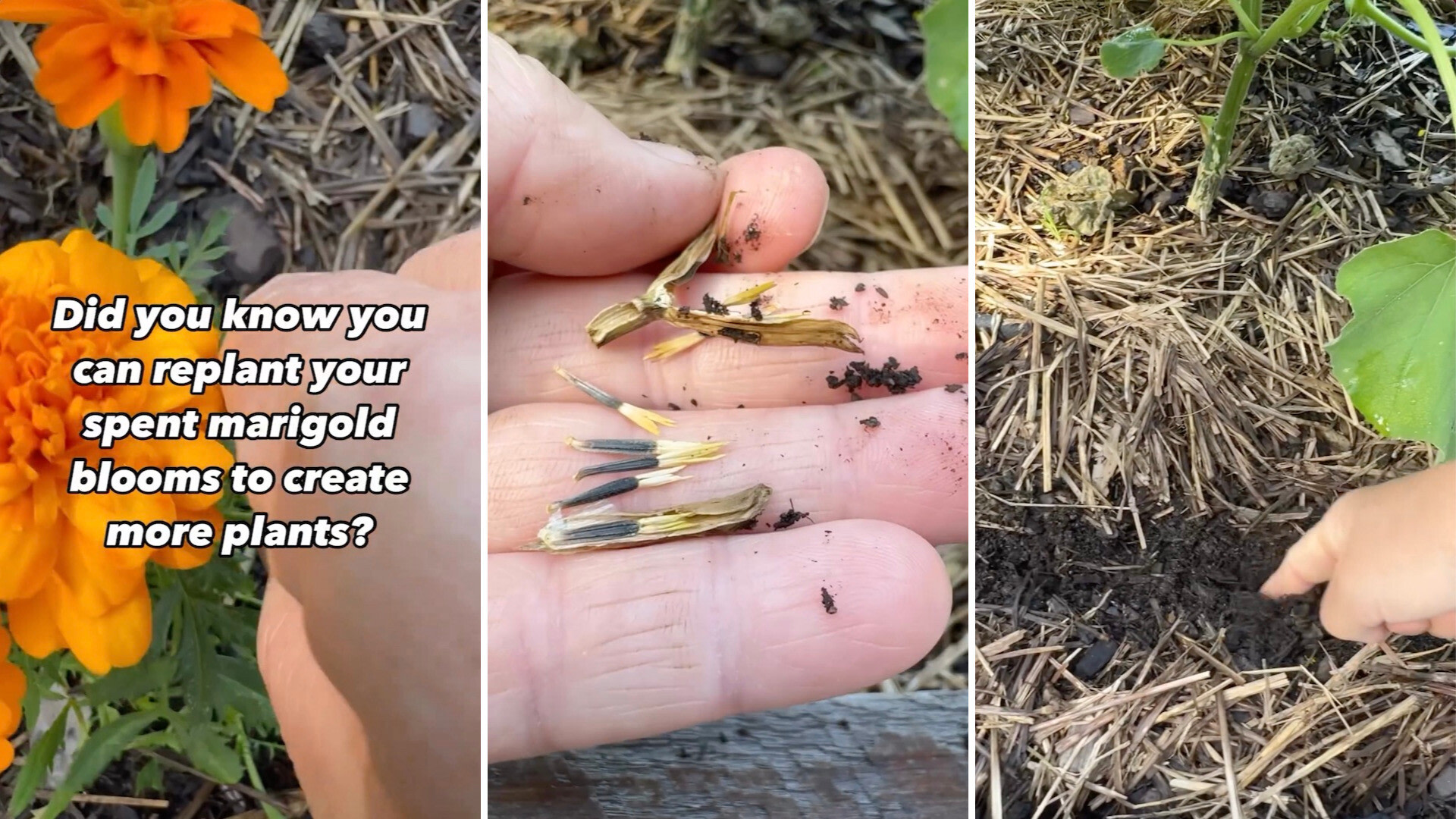 In a video shared on their page, Amber and Nick showed that you can take your spent marigold blooms and, by gently rubbing them open, get a whole packet's worth of seeds from just one "deadhead" bloom.
