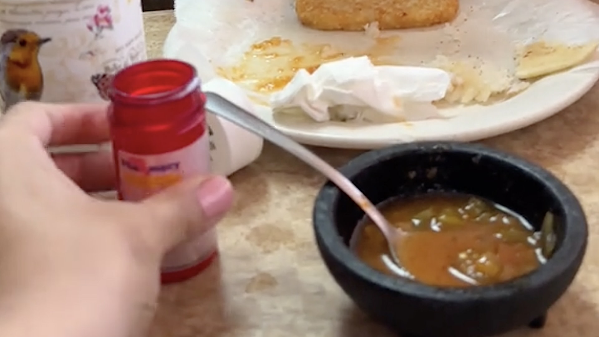 Lionhearted & Kind (@thelionheartedkind) shared a video of herself eating a meal with her grandmother with the caption, "When your grandma brings her own coffee creamer in an old medicine bottle."