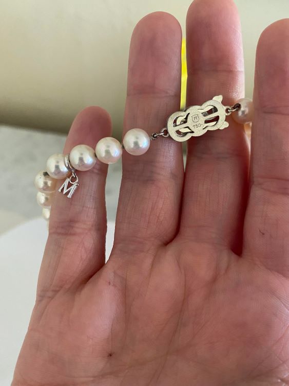 According to the poster, "my mom picked these up for me at an estate sale for $16. … From what I can tell, the clasp seems genuine with the Mikimoto maker's mark. … I'm ecstatic at what a steal these were!!"