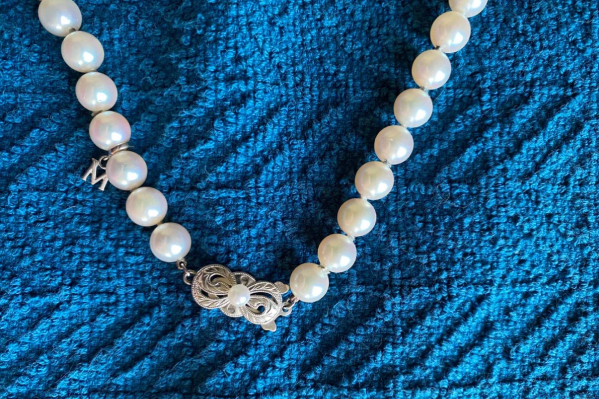 One Redditor took to r/ThriftStoreHauls to show off the incredible piece of jewelry their mom found at an estate sale. The post shows about half a dozen photos of a beautiful pearl necklace, showing both the whole string and close-ups of the clasp and charm. The charm is a small M, while the clasp appears to have the signature Mikimoto engraving.