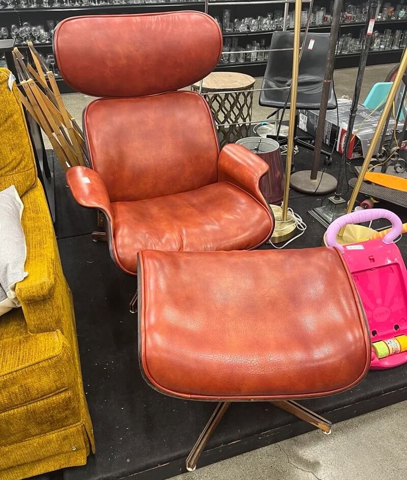 In a Reddit post on the r/ThriftStoreHauls subreddit, a user posted photos of their find — a $28 leather chair with a headrest and ottoman included.