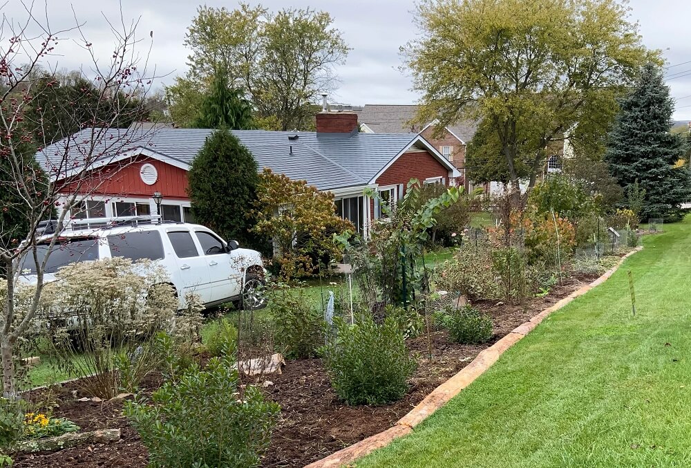 Finally, the original poster has a thriving corridor of native plants along the edge of their property, with bright colors appearing from spring to fall.