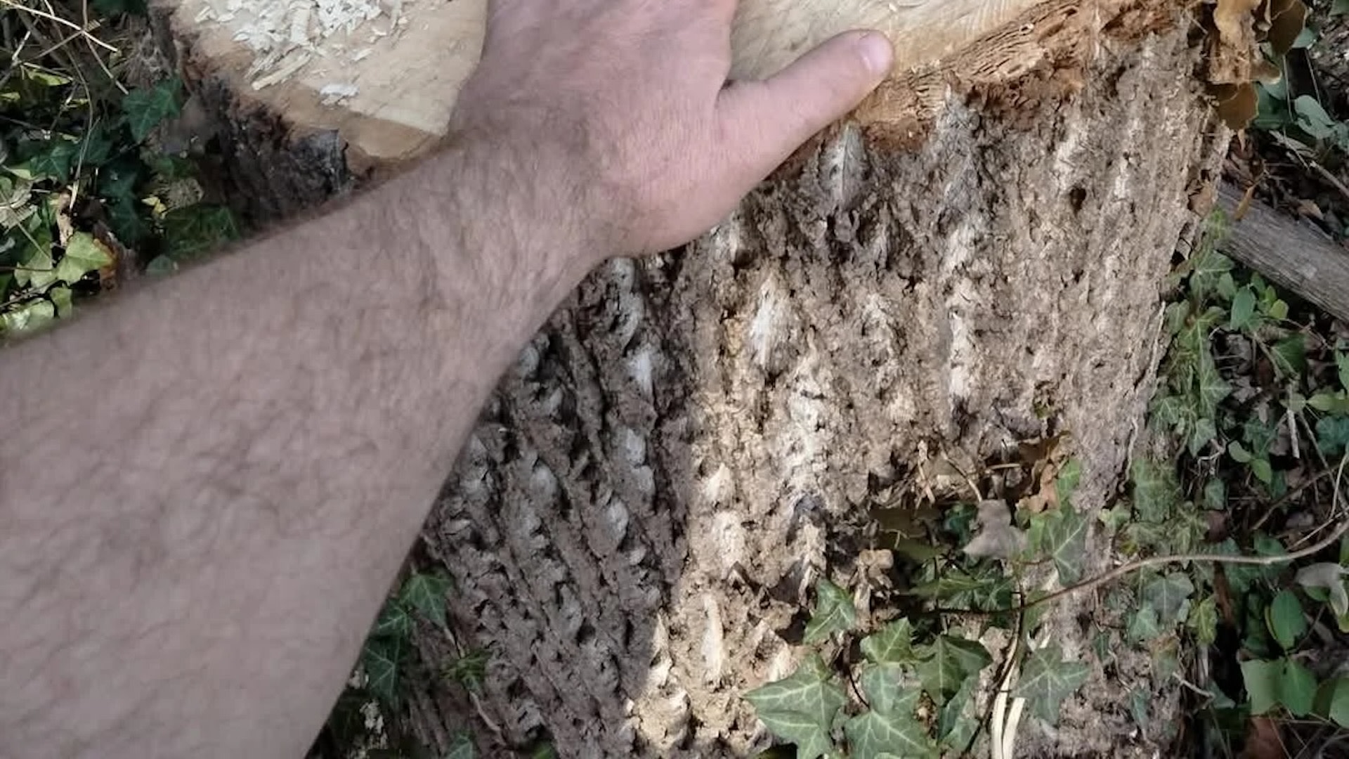 The photos included in the post look like they could be from the clear-cutting of a forest. There is one large tree that was cut, leaving a jagged, splintered edge, while the other photos show general chaos and destruction. A metal fence was crushed by the falling trees, and brush and branches were strewn in a massive area.