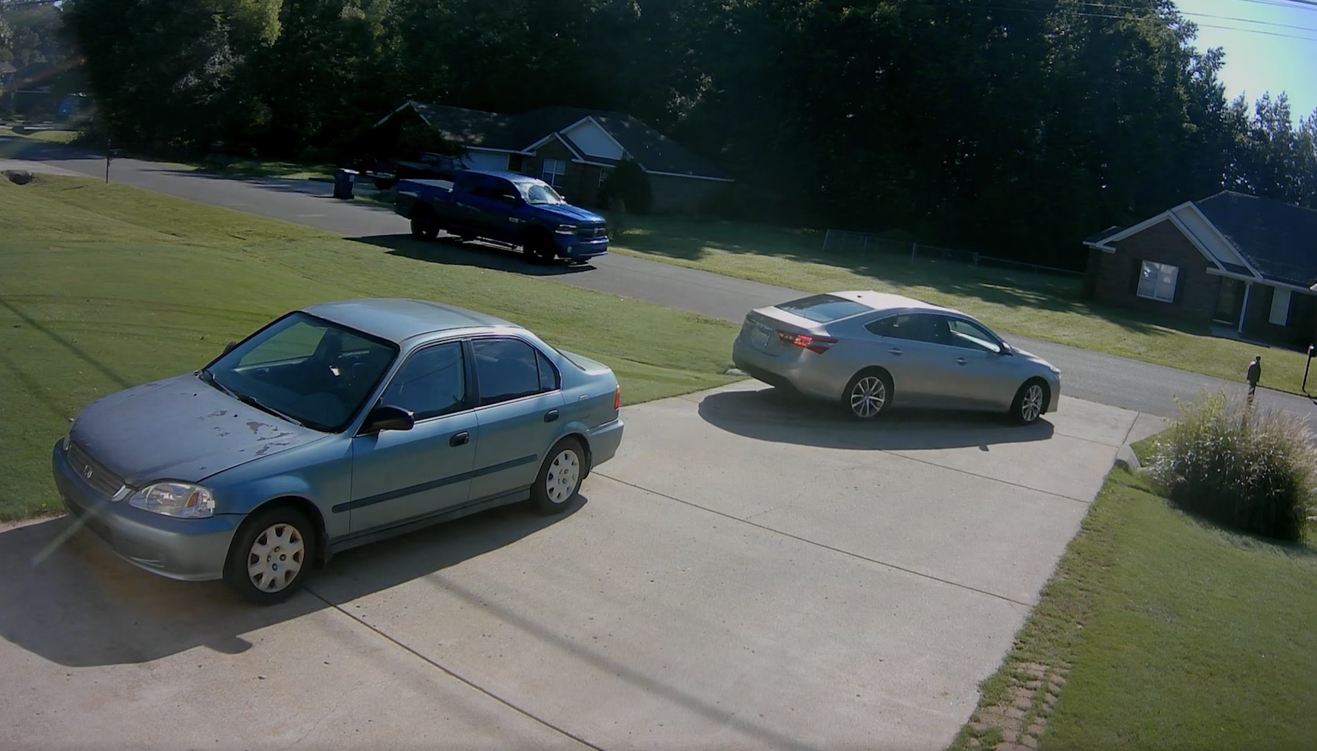 A frustrated homeowner posted a surveillance video on the r/lawncare subreddit that showed a car driving through the poster's expansive green lawn, onto their driveway, then entering the road.