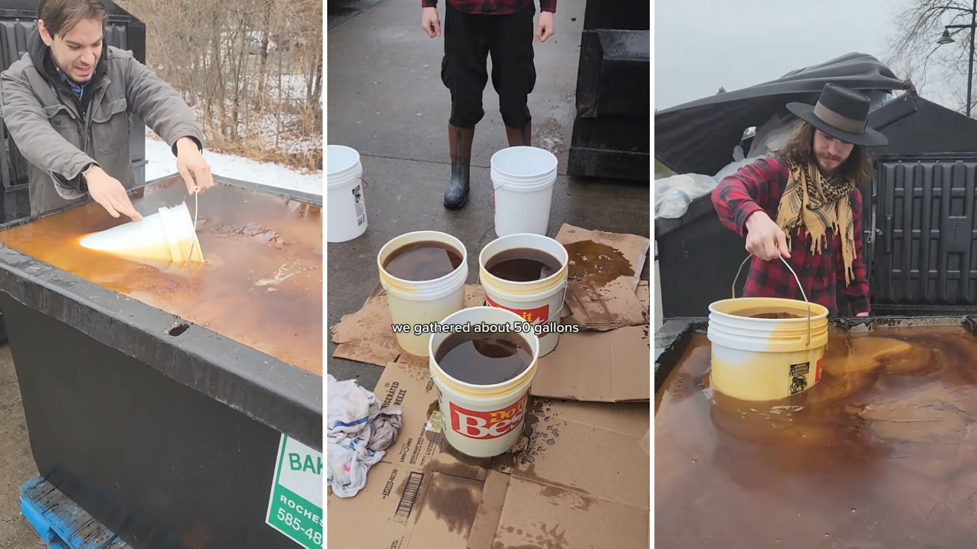 In a video posted by Tucker (@janklabs), two men use white paint buckets to collect gallons of used fryer oil. What looks like messy waste to most people is treated as a valuable resource. The substance is collected from restaurants and processed into biofuel strong enough to accomplish tasks that would usually require dirtier energy sources.