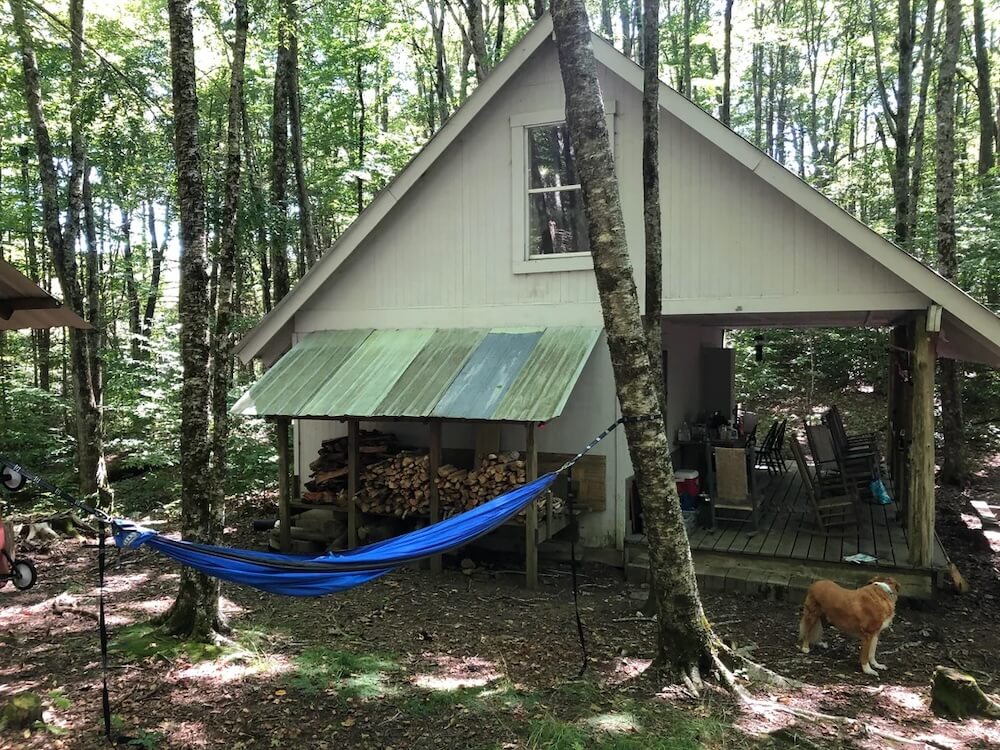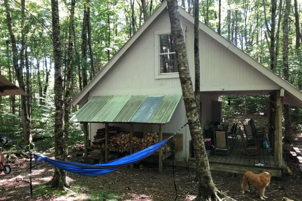 It's a beautiful sight: a simple cabin in a lush forest with a covered porch, log storage, a campfire, and a well. Don't let the simple appearance fool you, though — off-grid living involves a lot of planning, but it's worth it.