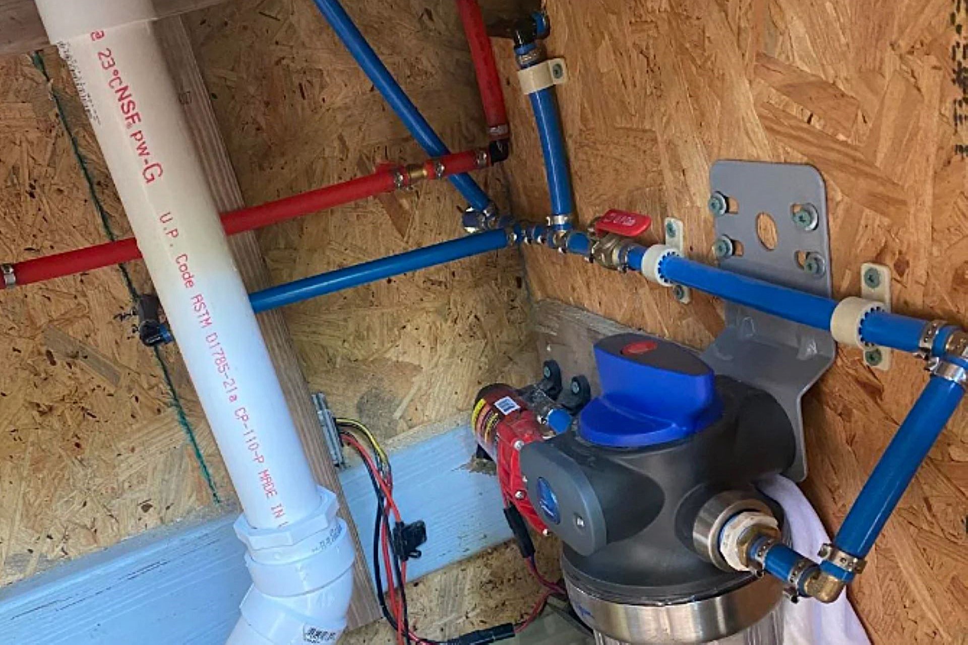 A Redditor posted photos on a forum discussion that is focused on off-grid living. The photos showed a new off-grid plumbing and water system for their outdoor kitchen and bathhouse.