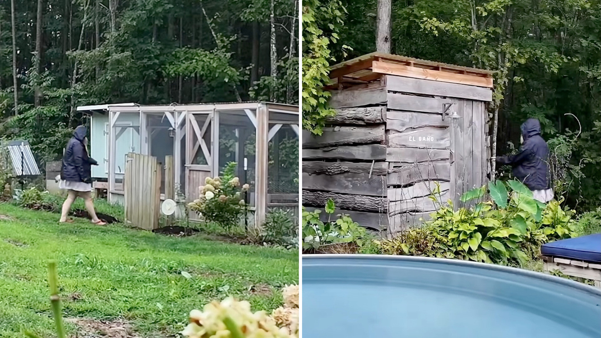 The video began with a brief glimpse at their stock tank pool, before panning to one of the women checking on their chickens, showering, lighting a candle, and mixing up some DIY cleaning products.