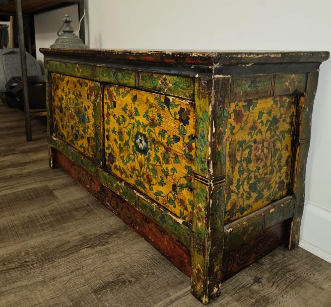 "Looks Tibetan. Real Tibetan antique furniture is incredibly difficult to get so I would guess that this is probably a reproduction. It's still beautiful though," another user commented.
